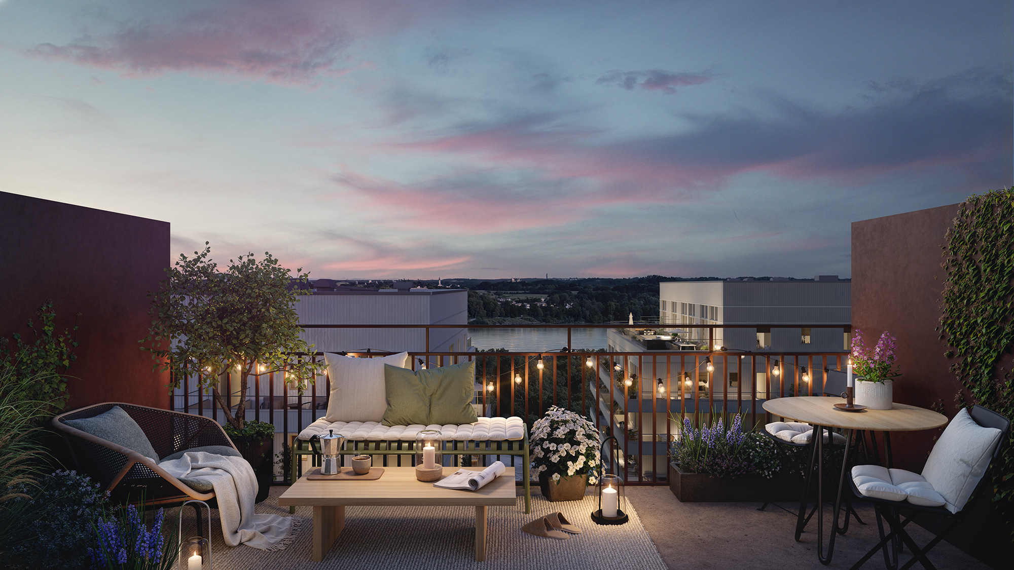 Bostäderna kommer att erbjuda en snygg design med modern inredning och med uteplats, balkong eller takterrass med härlig utsikt över Drevviken i Farsta!