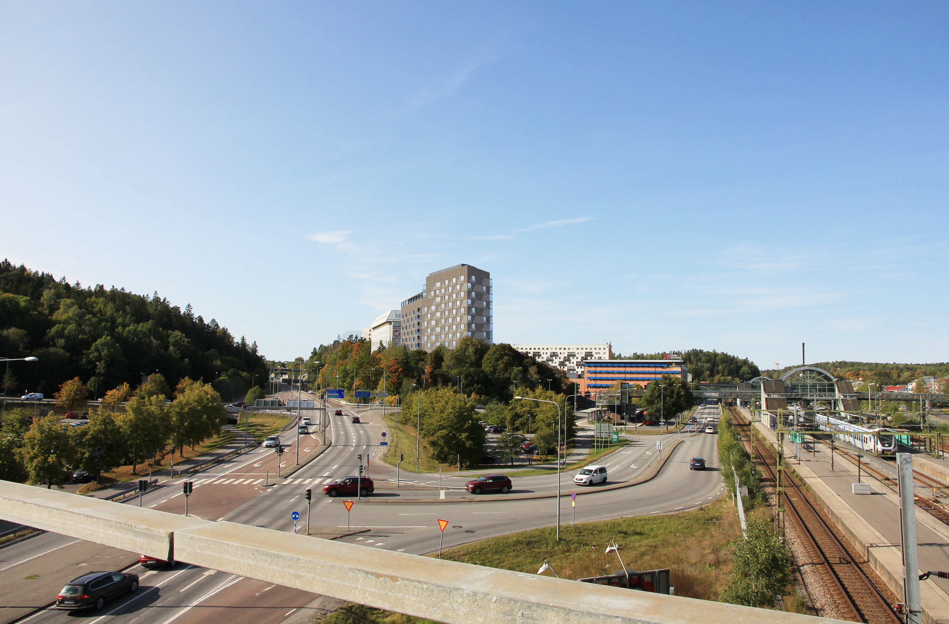 Tumba Port ligger på en höjd, bara en kort promenad från Tumba centrum med butiker, service, pendeltåg och bussar.